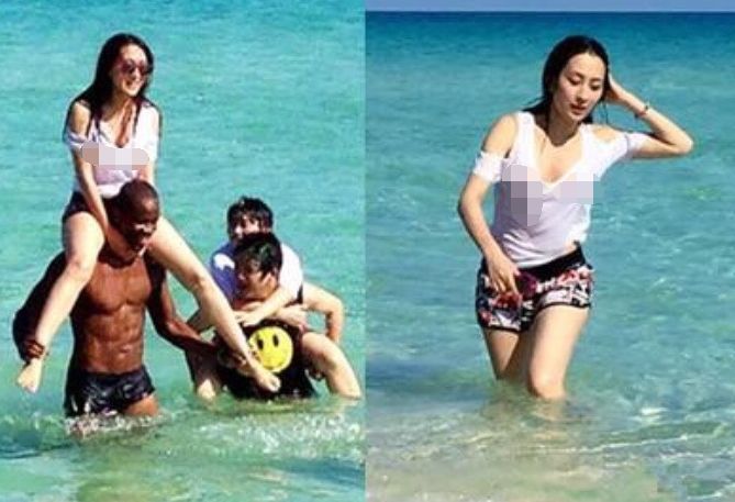 爆料还没完,博主继续放料,发了一张马苏坐在一个黑人肩上的照片,而且上身已经湿透,里面呈真空状,叔贴心的给你们打上了码。