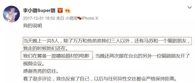 结果解释的内容和李小璐有出入不说,她还很聪明的把自己择出去了,我晚上喝酒睡着了,意思就是之后发生的啥我可都不知道啊。