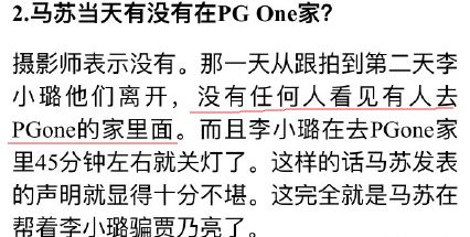 这一段话云里雾里的,实质的东西一句没说出来。她说自己说的是真话,不过后来卓伟直播连线了当天的拍摄者,人家说等了一夜,也没看见马苏去pgone家。
