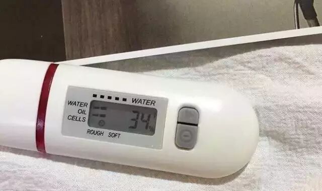下面是我测试的数据,贴面膜前肌肤的含水量是34%。
