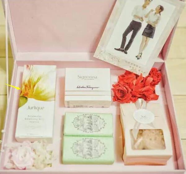 安以轩婚礼送出的伴手礼HELIUS高级定制护肤礼盒,价值超过60000台币,相比她低调的恋情,婚礼堪称奢华。