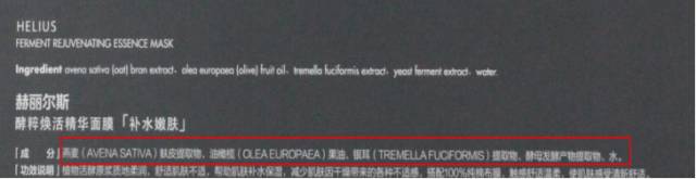 而HELIUS小黑盒面膜,是我见过的唯一一款水排在最末位的面膜,简直良心到哭!