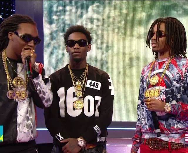 来自美国佐治亚州的说唱三人组。由Quavo、Takeoff和Offset组成。今年二月Migos凭借他们的第二张正式专辑Culture收获了他们出道以来在公告牌专辑榜中的第一个冠军。据统计,这张唱片在美国上市第一周内一共售出了十三万一千张。