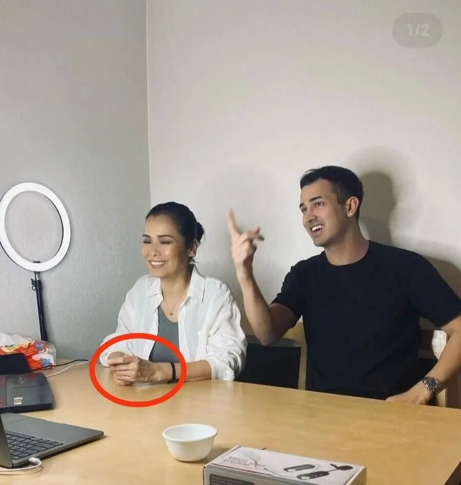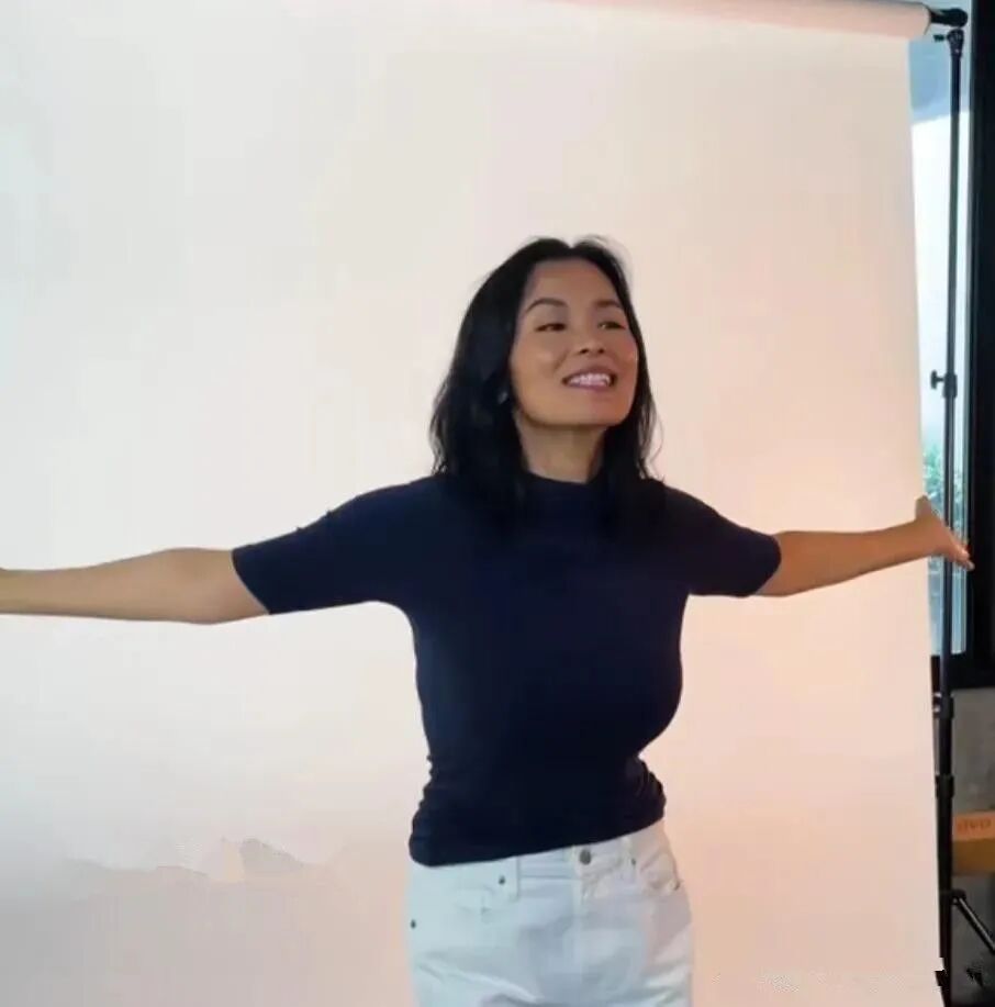 这次应该是在直播,所以是面前放了一个打光的灯,她穿了一件灰色的衣服,外面套了一件白色的衬衫,这样的话整个人的状态看起来还是比较有精气神的,而且很多时候她穿的衣服都是比较的简单