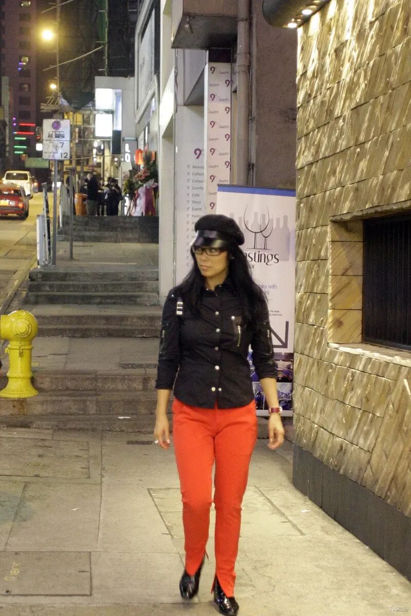 穿搭解析: 黑衬衫+ 橘红色裤子= 普通大妈风