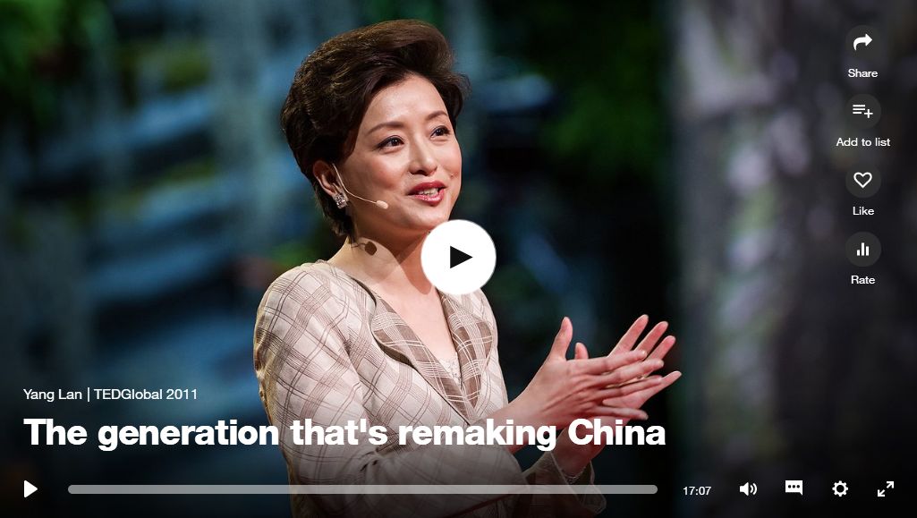 Well after a few years, I decided to go to the U.S. and Columbia University to pursue my postgraduate studies, and then started my own media company, which was unthought of during the years that I started my career. So we do a lot of things. I've interviewed more than a thousand people in the past. And sometimes I have young people approaching mesay, "Lan, you changed my life," and I feel proud of that. But then we are also so fortunate to witness the transformation of the whole country. I was in Beijing's bidding for the Olympic Games. I was representing the Shanghai Expo. I saw China embracing the world and vice versa. But then sometimes I'm thinking, what are today's young generation up to?How are they different, and what are the differences they are going to make to shape the future of China, or at large, the world?