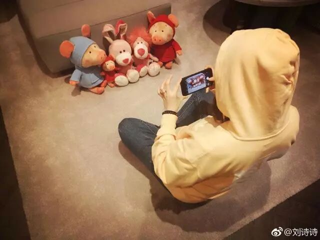 但也有刘诗诗的粉丝猜测称,除了图中的一家三口的猪玩偶之外,旁边的小狮子则是指代粉丝,中间的兔子应该是属兔的刘诗诗向大家比心,这种解释令不少人大呼太暖了!
