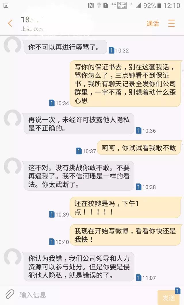 微博中不仅曝光妹妹和他的对话,更曝光了和渣男的信息,信息中名叫叶晨的人始终不肯书面道歉,惹怒李茂并爆粗口。随后,李茂更新转发此长微博,并呼吁,写道:“希望上海芬美意香料中国有限公司的相关人员,领导引起重视,等待你们的处理结果,感谢!也希望大家帮忙转发扩散,虽然我们也很无奈!”