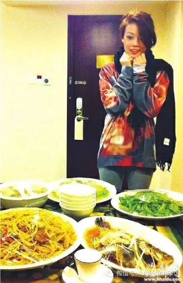 容祖儿微博晒福清演出的晚餐,照片上有酒店房门的细节