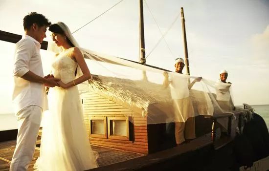 38岁的林志颖跟比自己小10岁的老婆陈若仪在泰国补办婚礼,唯美婚纱照曝光,仿泰坦尼克经典。
