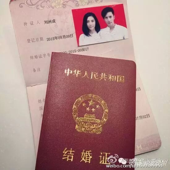 刘洲成晒出结婚证
