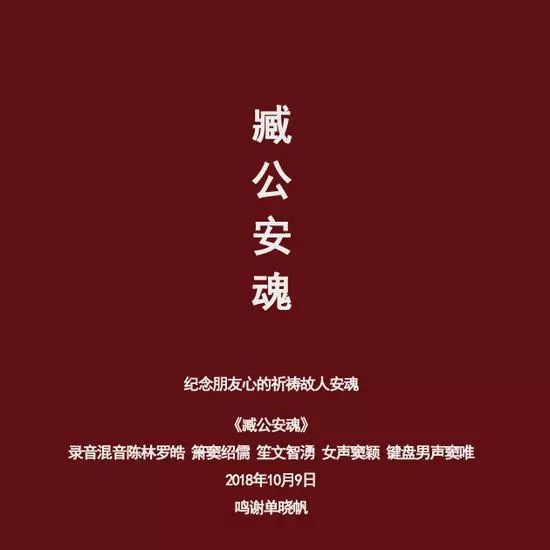 9月28日,臧天朔去世,告别仪式上,窦唯给老朋友送了一个花圈。10月9日零点,窦唯发布单曲《臧公安魂》,在海报中清楚地写着:“纪念朋友心的祈祷故人安魂。”参与歌曲制作的除了窦唯本人,还有他的父亲窦绍儒和妹妹窦颖。
