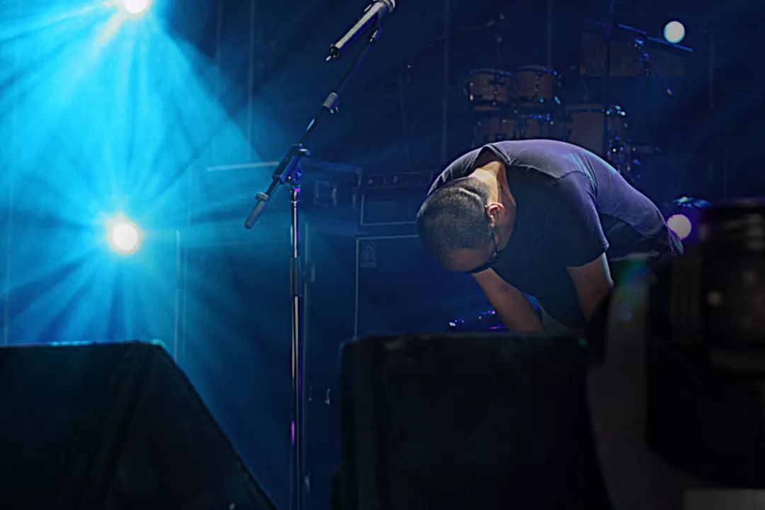 一次演出,窦唯向台下鞠躬。/ 视觉中国