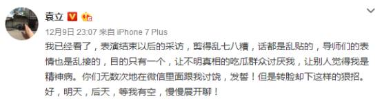 但是,袁立自己也在微博上说了,这么短的表演是不能代表什么的。
