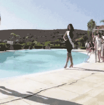 【西班牙环球小姐华丽转身,栽进泳池......】近日,西班牙选美佳丽皮拉尔•马格罗(Pilar Magro)参加环球小姐西班牙赛区比赛时,在泳池边走猫步,本欲优雅转身,却没想到直接摔入了泳池,场面异常尴尬......事后,救生员快速将她救上岸。恢复镇定后,皮拉尔脱掉高跟鞋,游向水池的阶梯后爬上岸,一同参加选美的选手们都为她鼓起了掌。