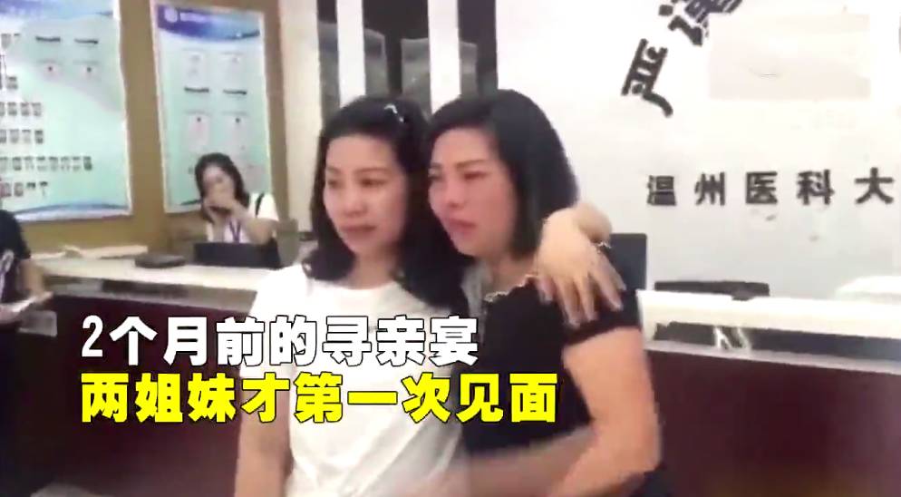 【女子晒两人合照问“像不像” 没想到竟是失散40年亲姐妹两女子在温州医科大学司法鉴定中心办事大厅相拥而泣。她们因寻亲认识,当时就有许多人说她们长得相像。妹妹还将合照晒在朋友圈里,开玩笑地问大家:“像不像?结果,她们竟是失散40年的亲姐妹。女子晒合照问“像不像” 没想到竟是失散40年亲姐妹