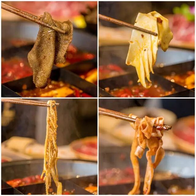 素有“肉中娇子”之称的牛里脊肉经过拍打、腌制,经过热辣的火锅汤底洗礼汆烫,牛肉被厚实的辣椒面紧紧包裹着,任你在锅里煮也不放手