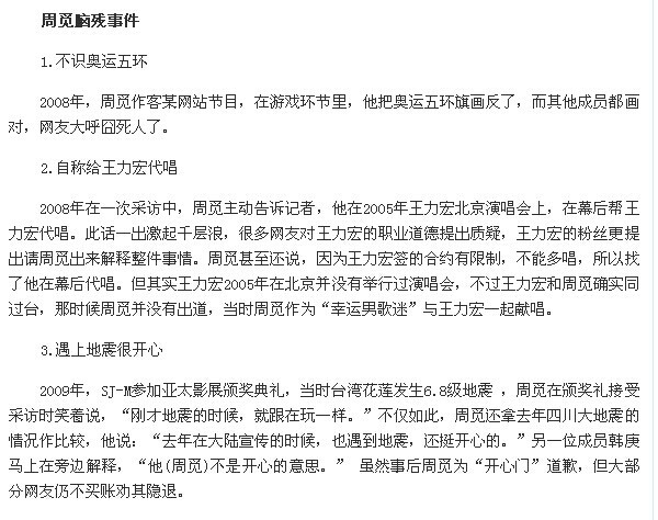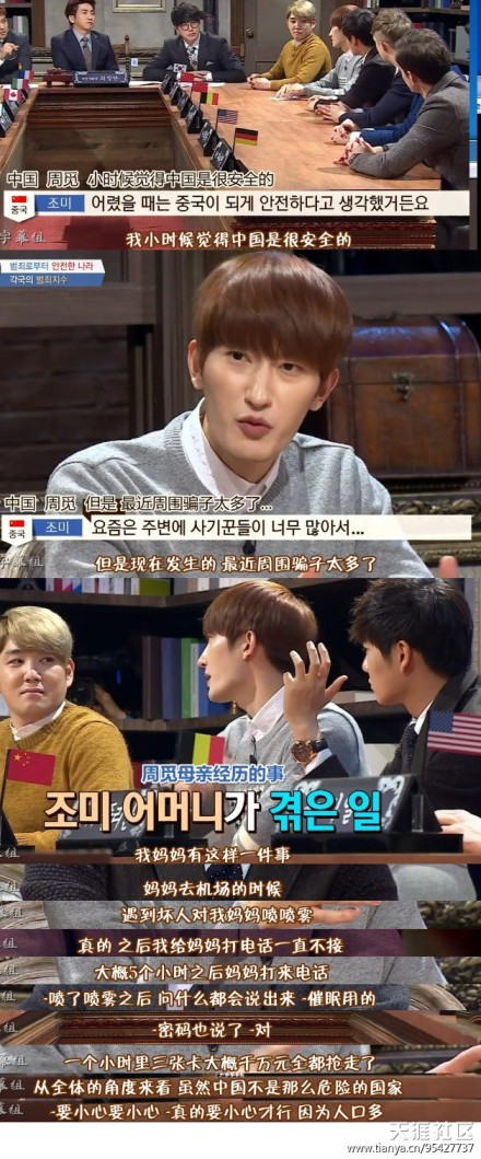 近日,周觅在韩综艺节目《非首脑会谈》里说自己老妈被催眠喷雾迷,周觅是sjm成员,早几年也是个脑残事迹多如山的主,最有名的就是地震开心门和辱骂韩庚门了,原本以为过了几年,他智商也应该长进了,没想到依然智硬,在韩国人面前传播早已被多次辟谣的迷香谣言。——引自天涯网友