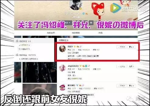 然而更残忍的是,冯叔叔竟然还跟前女友大倪妮是相互关注的好友