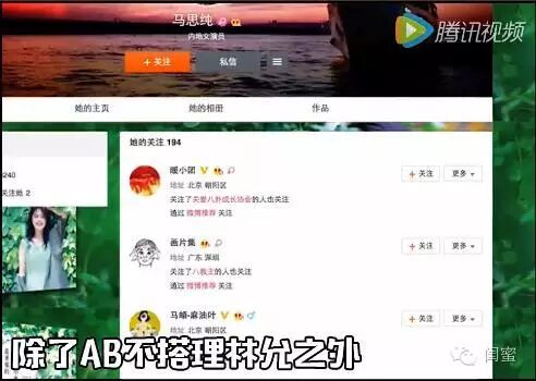 节目结束后,美人鱼小姐第一时间跑去关注了AB还有同期参加节目的马思纯的微博。