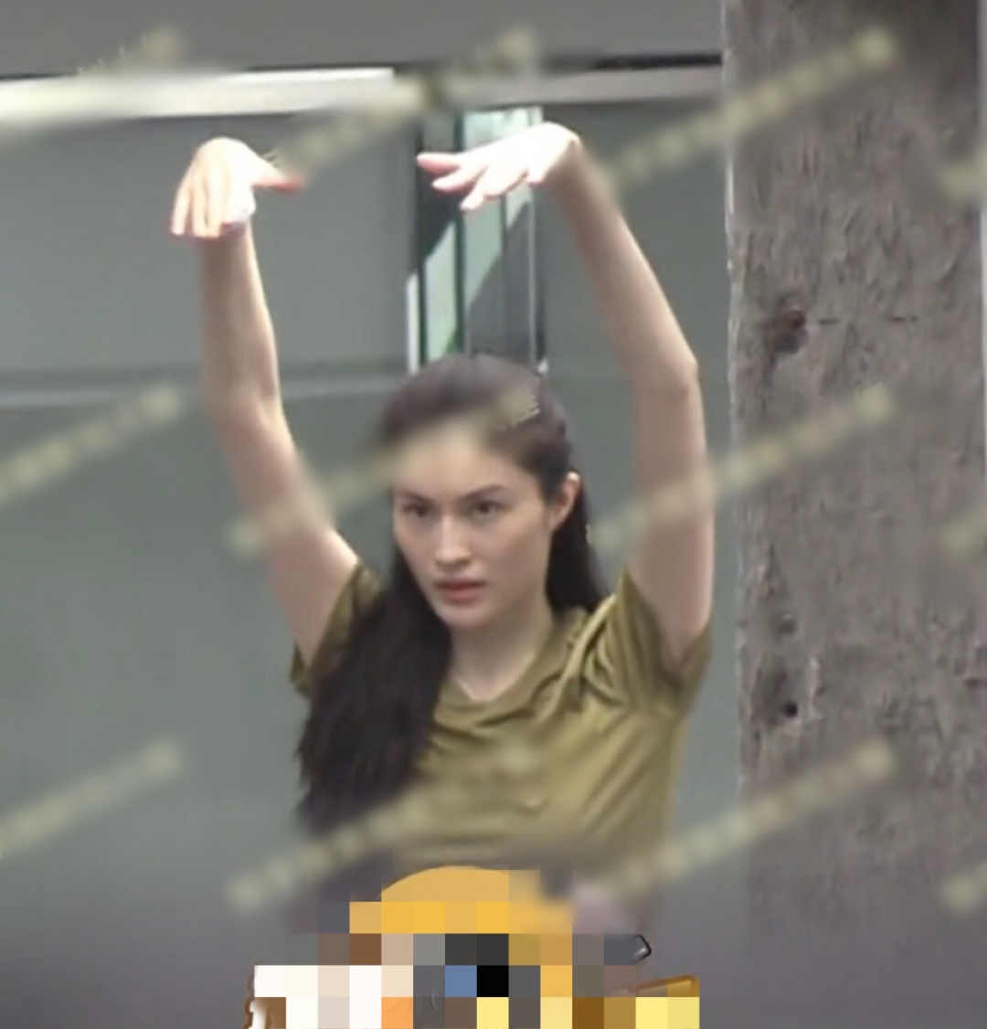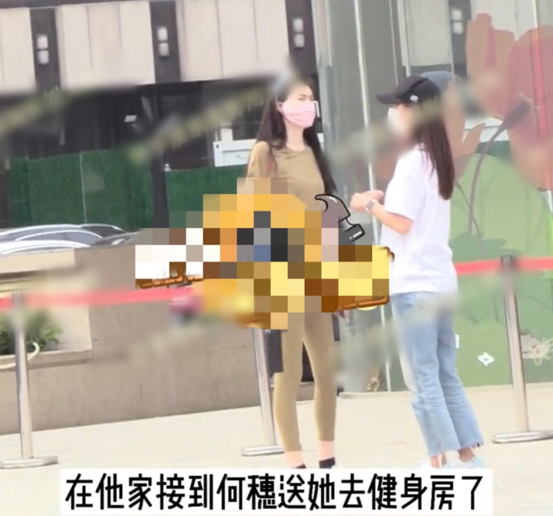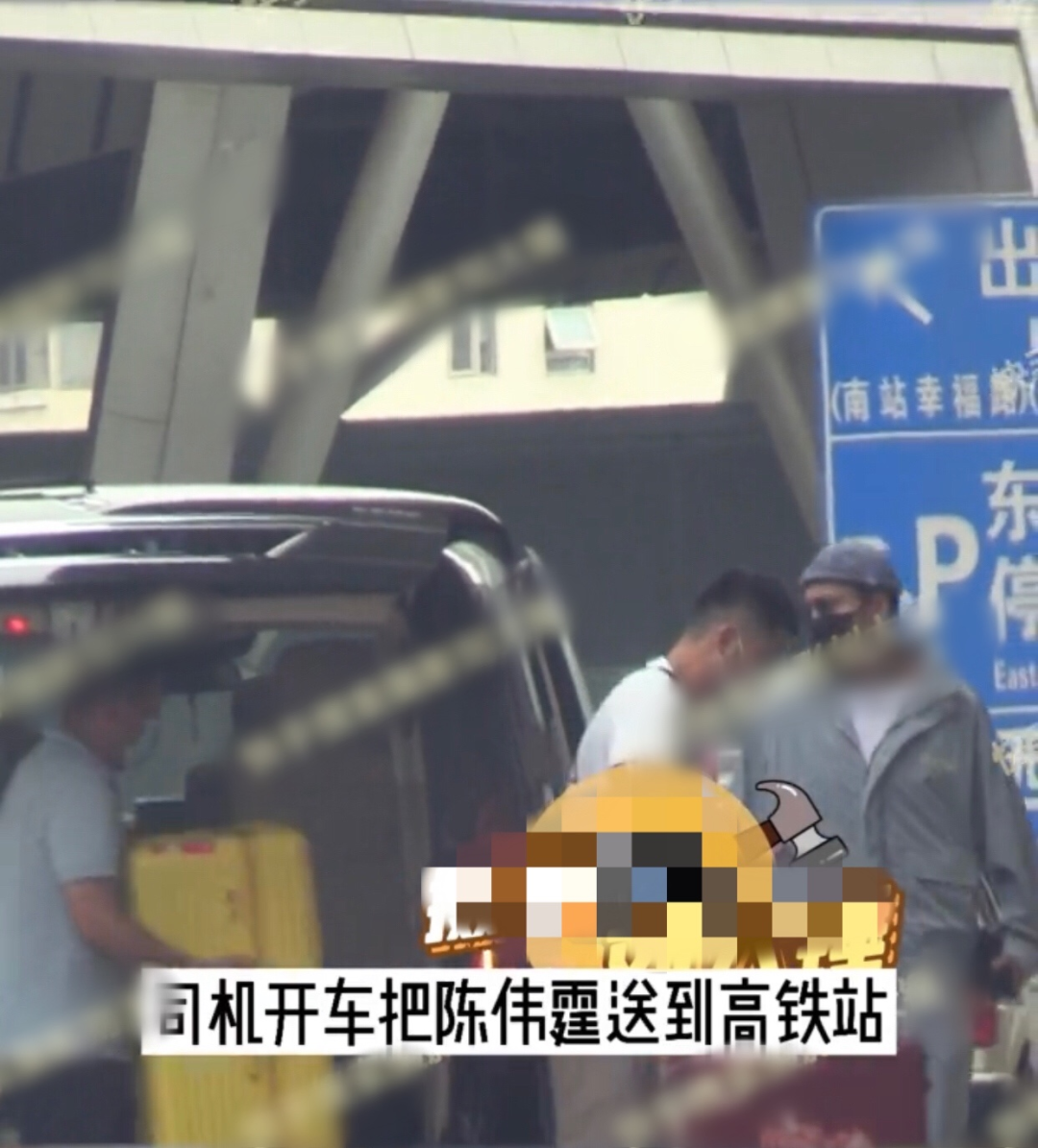 画面中可以很清晰地看见,何穗戴着粉色口罩,从陈伟霆专车的窗户中探出脑袋,似乎在和他道别。