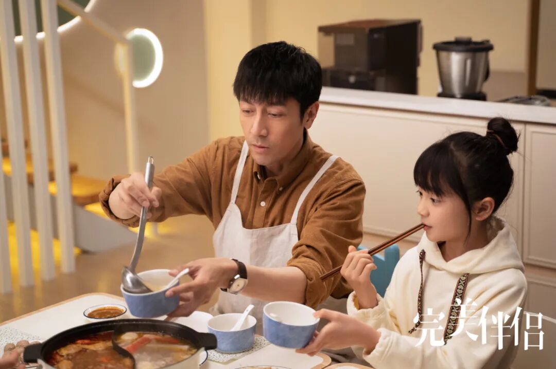 《完美伴侣》中有大量的家庭室内戏,张鲁一娴熟地给女儿梳头,帮老婆穿上外套,掐准时间送女儿上学;一家三口有很多场吃饭的戏,家庭大小矛盾都有可能在饭桌上爆发和修复。观众对于张鲁一贴脸的角色诠释、一如既往舒适自然的演技也十分认可。