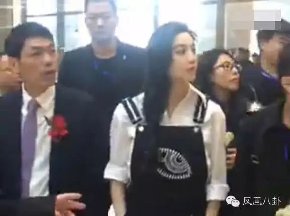 有网友拍到范冰冰身着白色衬衫加背带裤出席。
