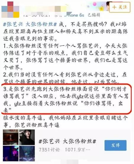 不过接着又来一个新反转是:节目现场录音被曝光,坐实大张伟粉丝现场起冲突,节目总导演之后也做出回应,期间提到暴力、人身攻击两词……话说有婊贝注意到张艺兴签给杨天真之后就频频上热搜么,而且大多没好事,被黑得也是挺惨的!
