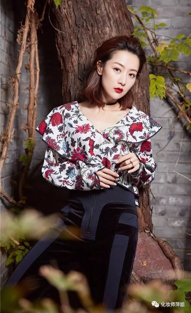 这身碎花衬衫十分的有复古感,它采用了v领的设计,更加凸显出她精致的锁骨,看得出她的身材是非常的好的,同时下面穿着一条黑色包臀裤将她傲人身姿完美的展现了出来,散发出性感抚媚的感觉。