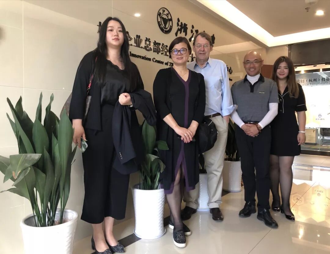 2019年5月21日上午,澳大利亚新南威尔士大学James Weirick教授与英国著名VR教育专家梁凯先生在浙江大学创新创业研究院亚太技术转化中心主任、澳大利亚浙江大学校友会会长、浙亚海创(杭州)投资管理有限公司董事长谢迎女士的陪同下对浙江大学校友企业总部经济园进行了参观和交流。
