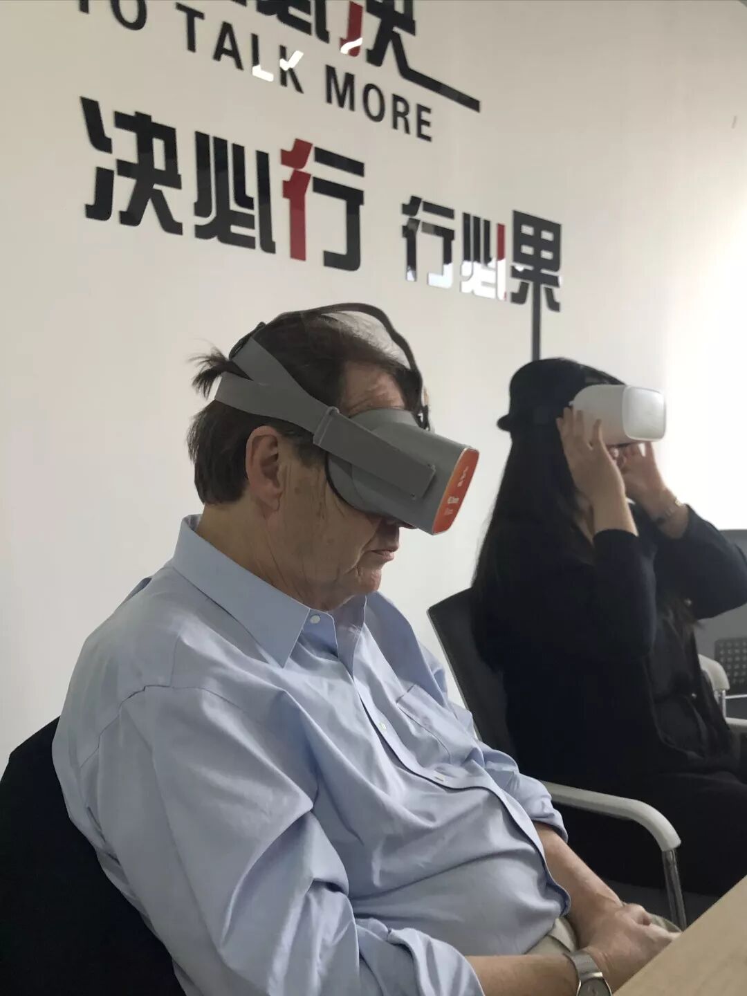 英国著名VR教育专家梁凯先生首先对谢迎女士的接待表示感谢,此次梁凯先生带来了VR教育国际先进的教育理念、技术、内容和设备,并进行了现场展示。与会人员纷纷起身,对VR眼镜表现出浓厚的兴趣,James Weirick教授也现场体验VR眼镜,连连称赞。梁凯先生表示在浙江大学建校122周年之际来参观浙江大学校友企业总部经济园非常有意义,希望有机会可以进行更多的交流和合作。