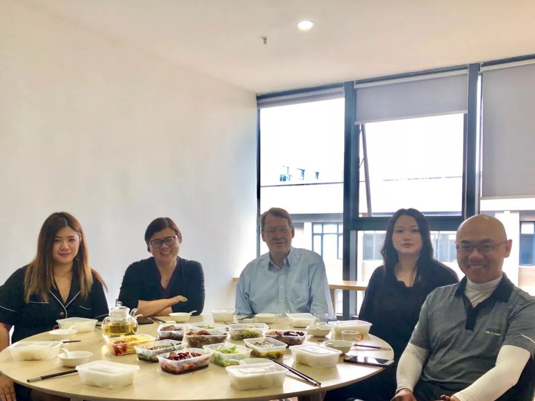 见面会后,谢迎主任在中心自己的休闲餐厅与客人一起用简餐。