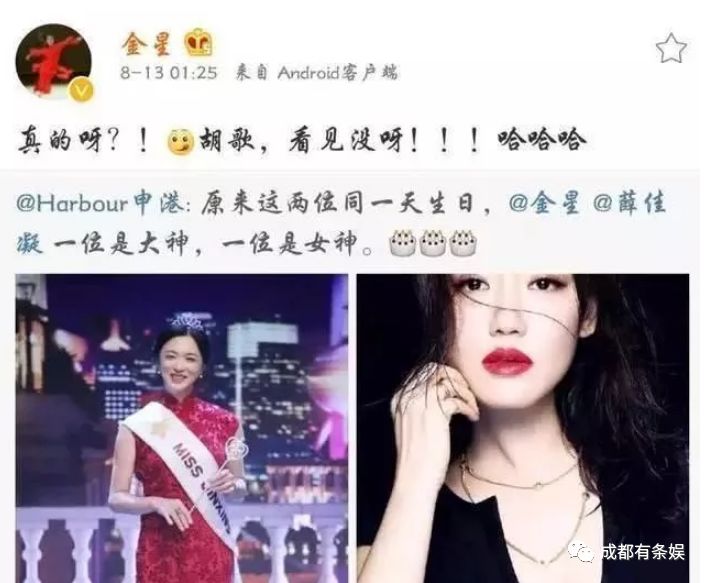 比如,金星曾在自己生日当天@胡歌,送上心照不宣的一句话。