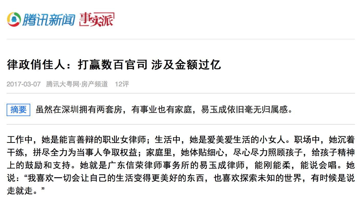 律政俏佳人:打赢数百官司 涉及金额过亿