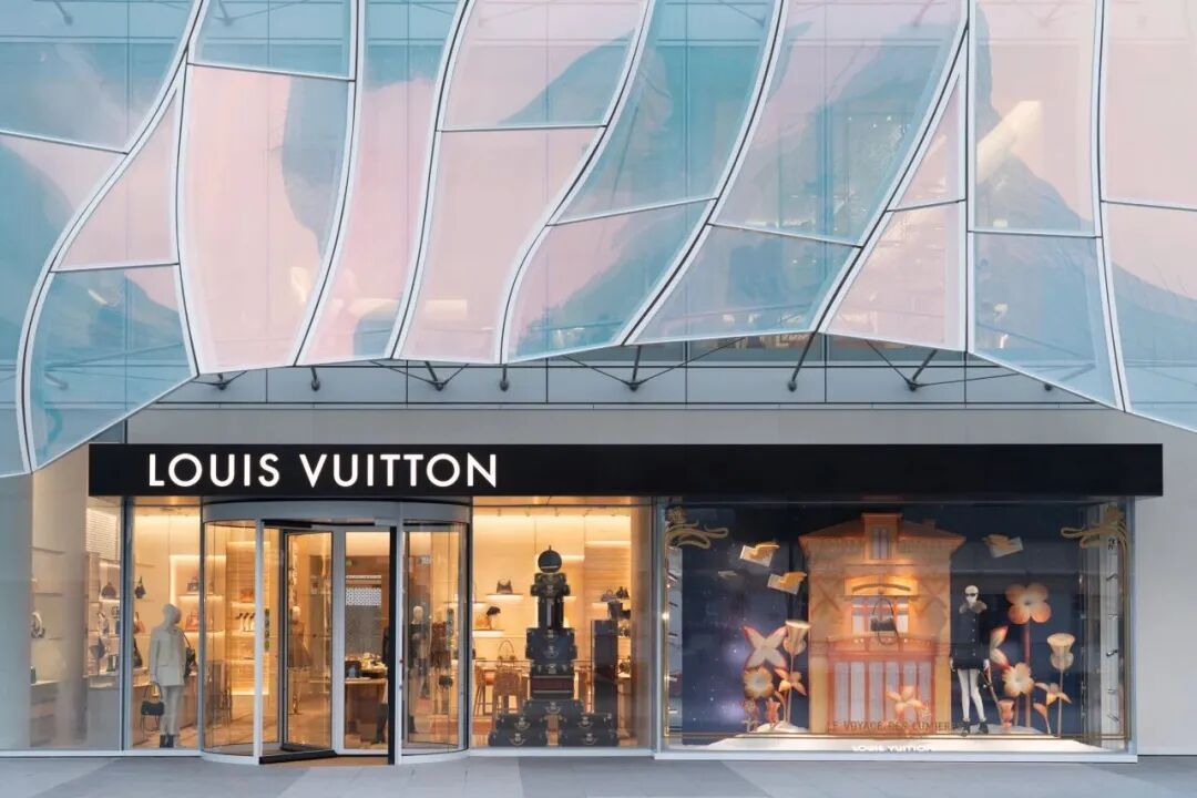 这座非凡之作由 LV 御用建筑师青木淳操刀设计,他深耕品牌门店设计二十余年,此次特别汲取中国传统园林造景元素,打造出精工玻璃幕墙。建筑立面宛如一件优雅透光的服饰,光影交织间尽显灵动质感,以全新设计语境诠释品牌 “旅行的艺术” 内核。