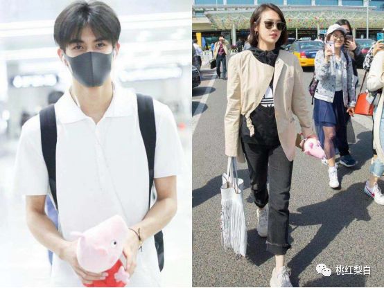 马思纯和宋威龙走机场,都不忘带着粉丝送的粉红小猪。