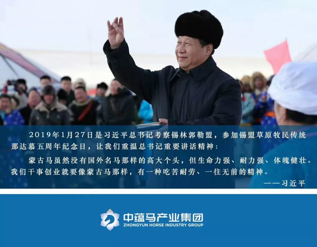 天生勇士,不拘厩内;志如鲲鹏,蕴藉心中。温和善良,为交心之益友;敦厚忠贞,实解语之良朋。得造化之垂青,品尤超迈;历时光之浸润,性已通灵。川河无阻,电驰兮雷奔;寒暑莫侵,雾驾兮云乘。中蕴集团,传承骏马之厚德;华夏儿女,再创业绩之新功。一马当先,行圆梦之盛世;万众归心,共复兴之征程。