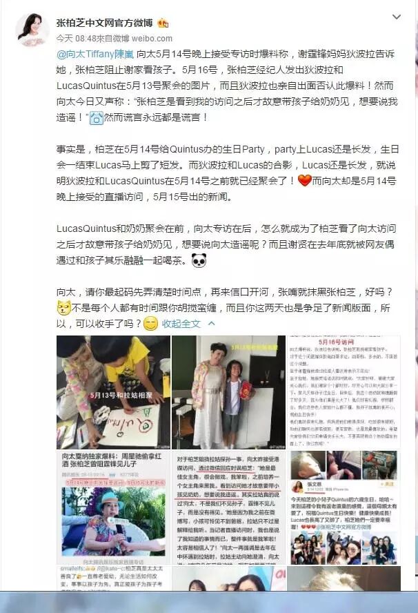 而张柏芝的经纪人也立刻晒出狄波拉近日与孙子见面的照片,打得向太节节败退。