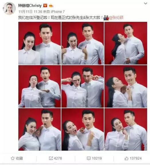 去年公布结婚的周渝民也用了这招,虽然没有配结婚证,但闪亮的结婚对戒也虐倒一大波迷妹。