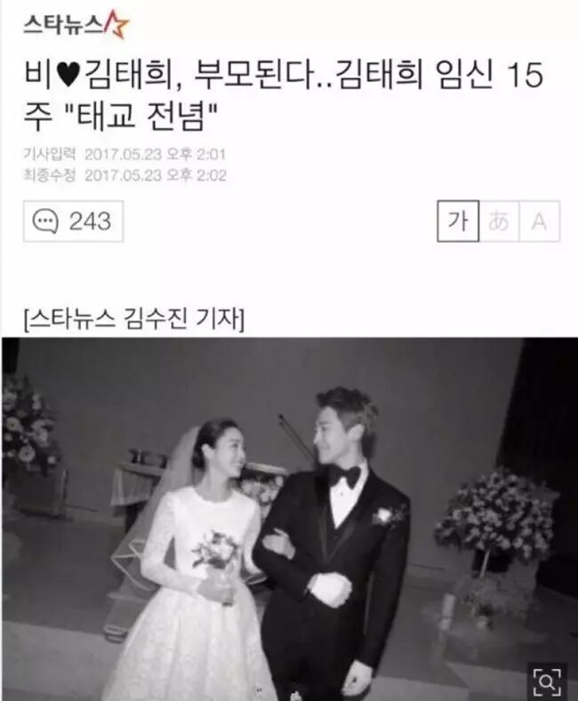 一大早金泰熙所属公司发表声明,声明中写道:“金泰熙已怀孕15周.虽然知道怀孕初期应该注意身体,