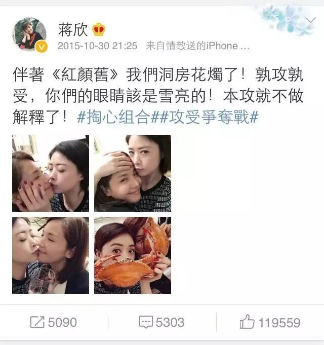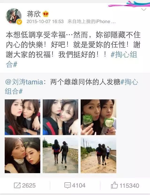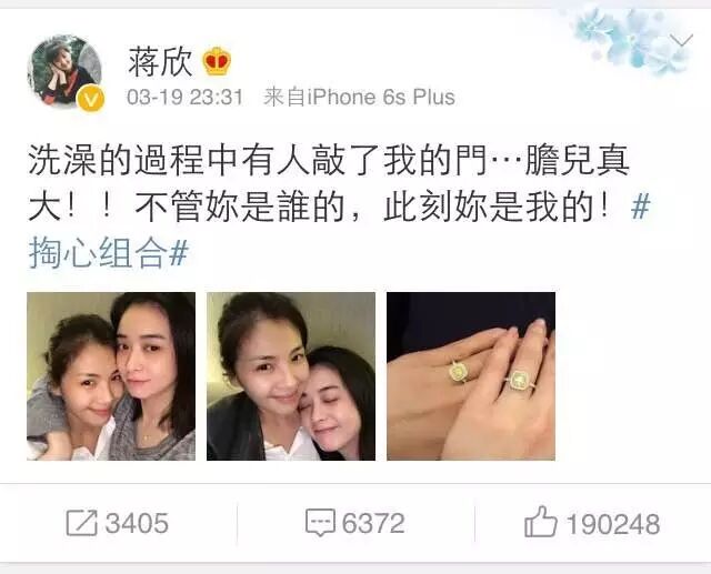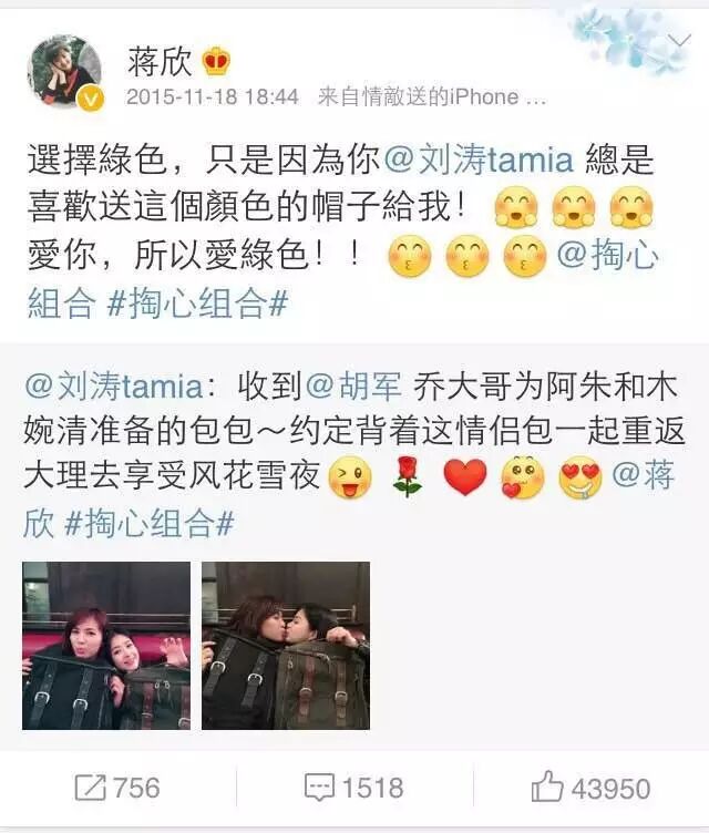 微博上两人已组成“掏心组合”,多次公然秀恩爱!
