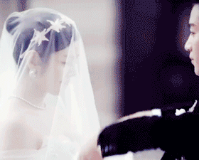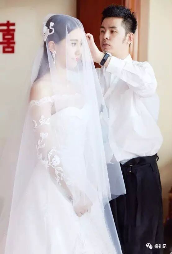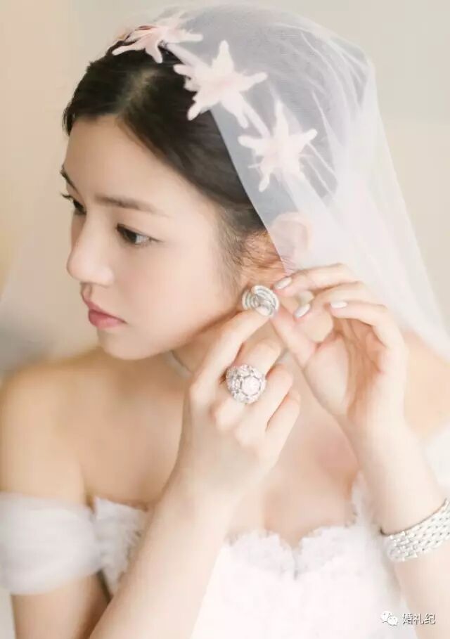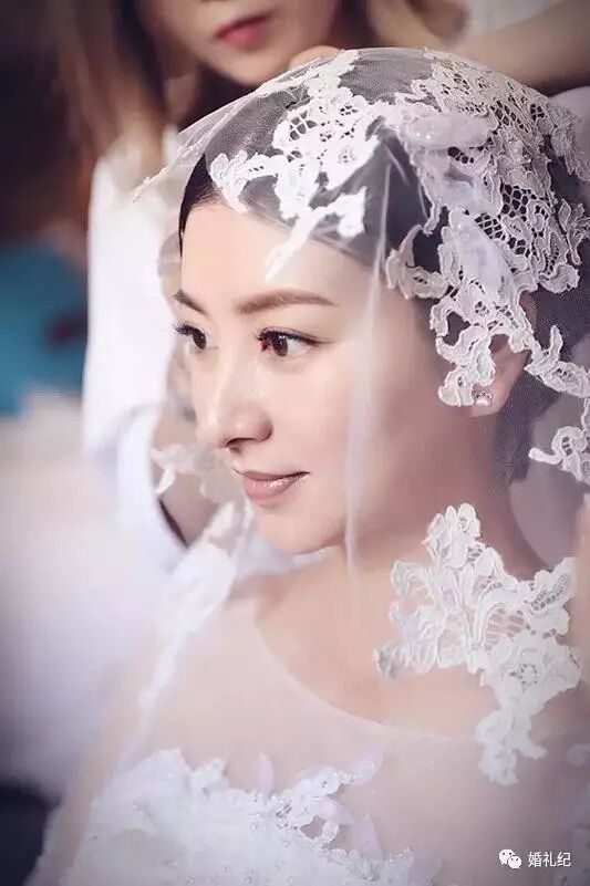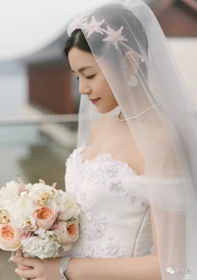 因为新娘子本身是盘发,头纱能很好地修饰陈妍希的脸型。