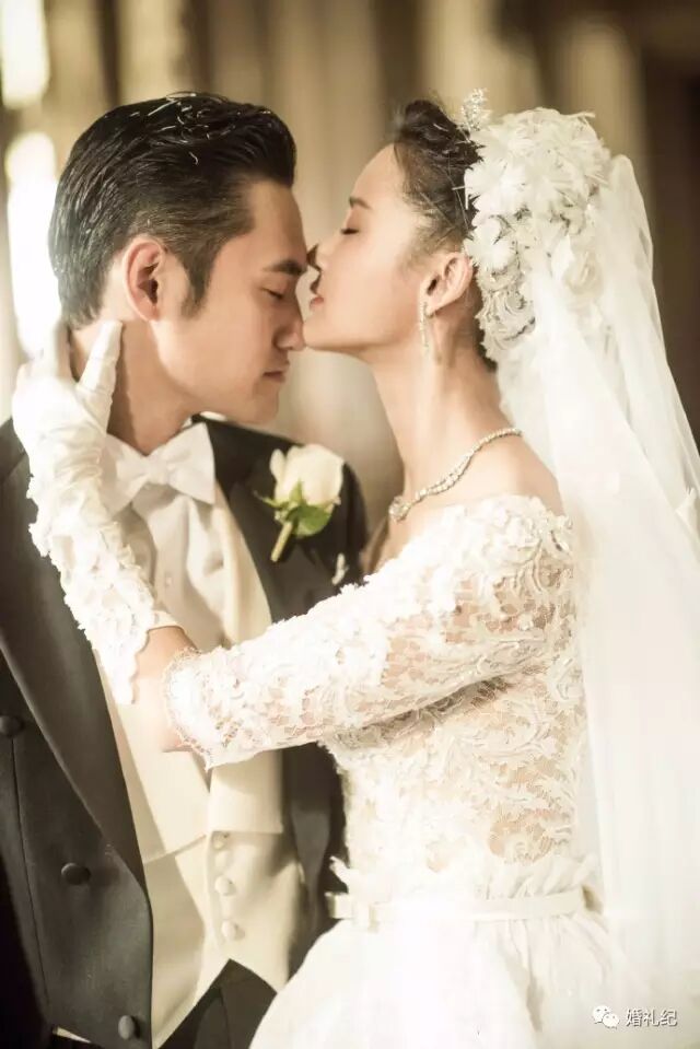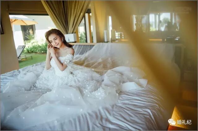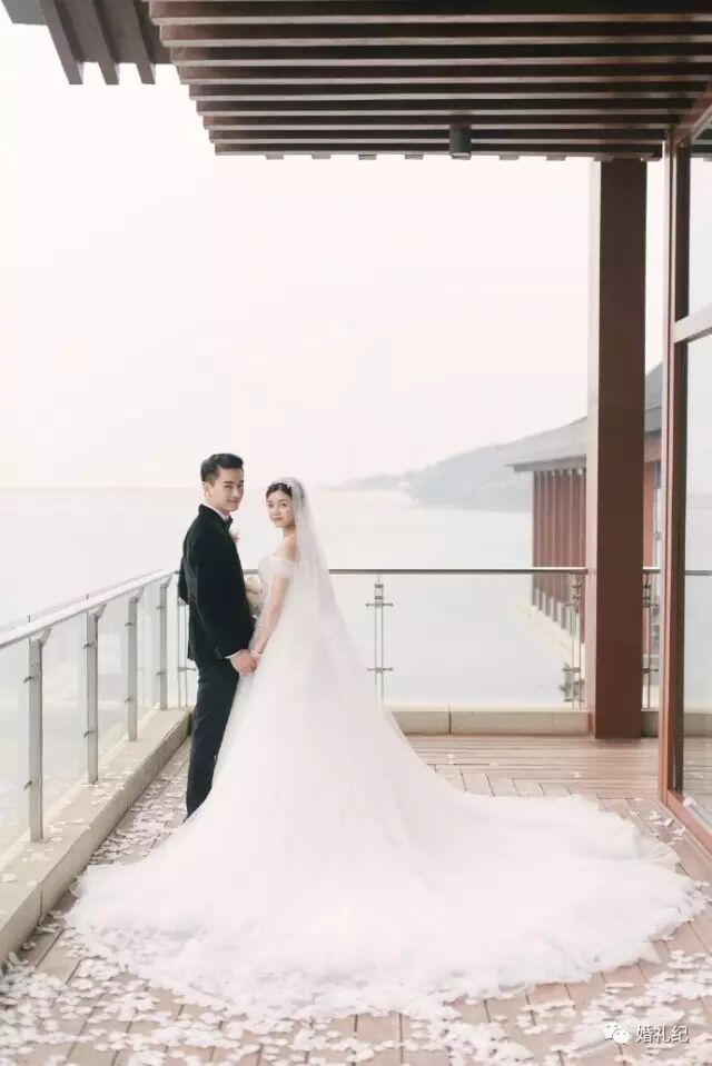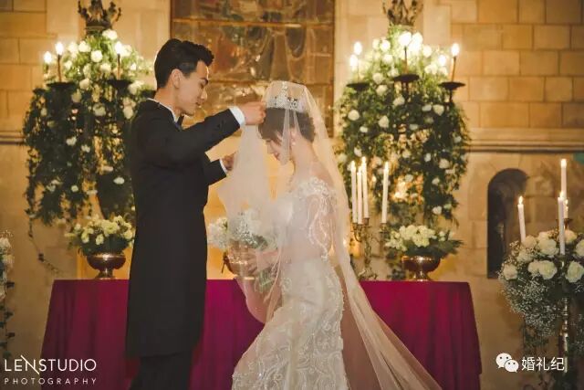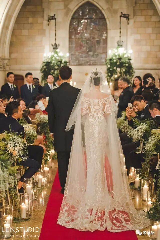 陈紫函在西班牙的古堡里举行的婚礼,婚纱来自婚礼纪入驻商家LilyGardenBridal,陈紫函十分女王范的选择了鱼尾婚纱。