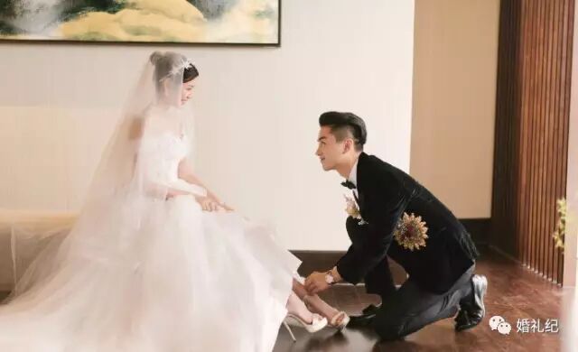 搭配的婚鞋来自意大利品牌菲拉格慕,怀孕了都穿那么高的鞋跟,好拼。