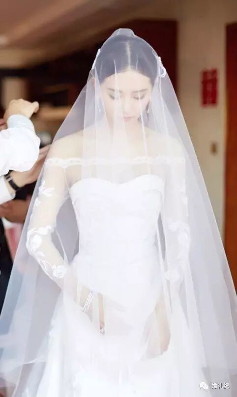 头纱由4米的薄纱和蕾丝花边打造,可以包裹全身。