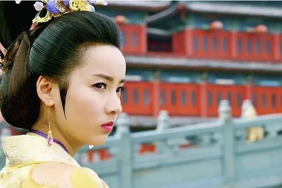 杨怡也是盘发,不过头上厚厚的一大包显得杨怡的脸更长了...