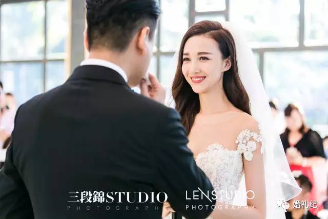 张靓颖婚纱是tonyward的,大裙摆很隆重,发型还是熟悉的三七分,没什么惊喜。