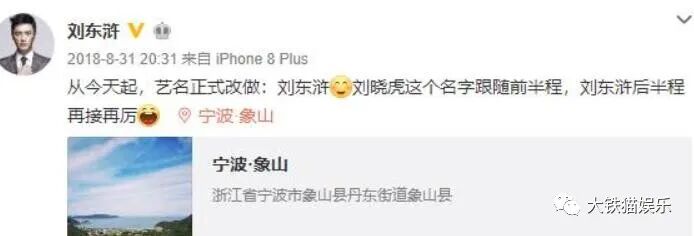 更加搞笑的是2018年他宣布改名的时候说刘晓虎跟他前半程,刘东浒跟他后半程,结果现在又改回刘晓虎了。