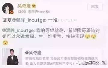 如今刘诗诗怀孕,算是全了吴奇隆多年的心愿。希望刘诗诗能像那位网友所说,生一堆健康漂亮的宝宝,然后一家人幸福生活下去。祝福你们。