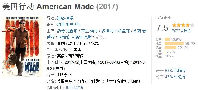 国内12月份上映,汤哥汤姆·克鲁斯新作 一天天长大 欧美男星 2017-11-22 18:53:52 226 创作不易,用心坚持,欢迎请BaGua喝几杯爱心咖啡!打赏并支持本文 打赏并删除本文 阿汤哥汤姆·克鲁斯新作, 根据毒贩巴里·希尔的真实故事改编,以荒诞的形式讲述一个名为巴里·希尔的大毒贩成了CIA& DEA线人,与其携手打掉哥伦比亚传奇大毒枭巴勃罗·埃斯科巴的故事。 创作不易,用心坚持,欢迎请BaGua喝几杯爱心咖啡!打赏并支持本文 打赏并删除本文 感谢您的支持鼓励,我会继续努力的!文章地址:用户邮箱:打赏金额:USDT 请输入数字点击”去打赏“,即可进行打赏支持本文章哦 汤姆克鲁斯 About the Author 一天天长大 功能介绍:原 电影小哆啦 Related Posts 【最新完结】【韩剧】 张娜拉、崔振赫 等主演的爱情剧 2019-02-22 17:50:22 【经典】尼古拉斯·凯奇高分犯罪片,豆瓣评分8.1 2018-08-24 17:43:30 张若昀、马思纯、李现、刘敏涛、姜超 等主演的最新爱情喜剧 2018-05-25 00:07:49 周渝民、薛凯琪、郑中基 等主演的爱情喜剧 2018-05-14 23:06:53 宫崎骏动画系列合集 2018-03-21 19:18:52 发表评论